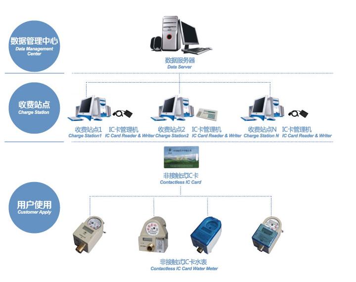 IC卡水表系統(tǒng)以IC卡作為數(shù)據(jù)載體,在微機系統(tǒng)管理軟件下可實現(xiàn)用水收費、數(shù)據(jù)存儲分析、監(jiān)控水表運行狀態(tài)等功能,從而對水資源實現(xiàn)科學化、系統(tǒng)化、透明化的管理。本系統(tǒng)可通過預付費、水表自動核減水量、根據(jù)水量自動開關閥等途徑,解除傳統(tǒng)人工抄表擾民、耗費大量時間和精力等難題,并杜絕惡意欠費。IC卡水表系統(tǒng)可有效提高管理部門的效益,已廣泛在高校、物業(yè)中心等全國各行業(yè)成功運用。